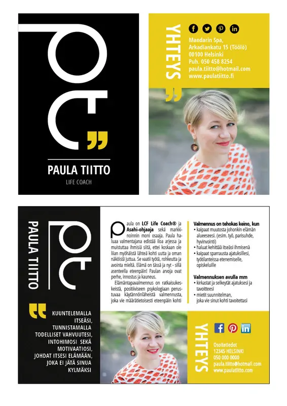 Suunnittelen tarpeen mukaan logot, käyntikortit ja esitteet.